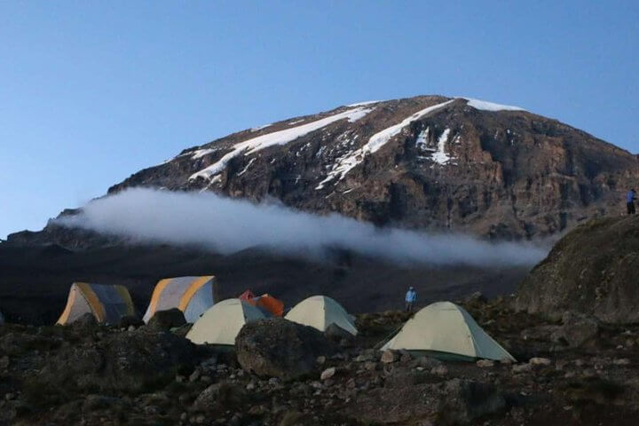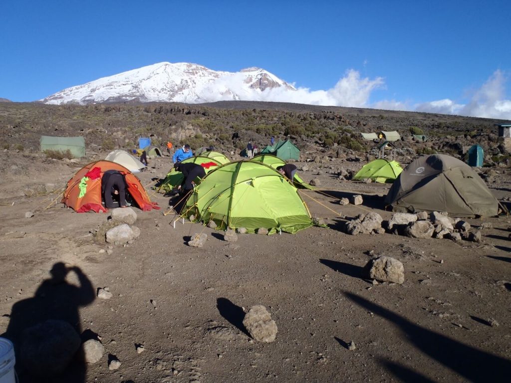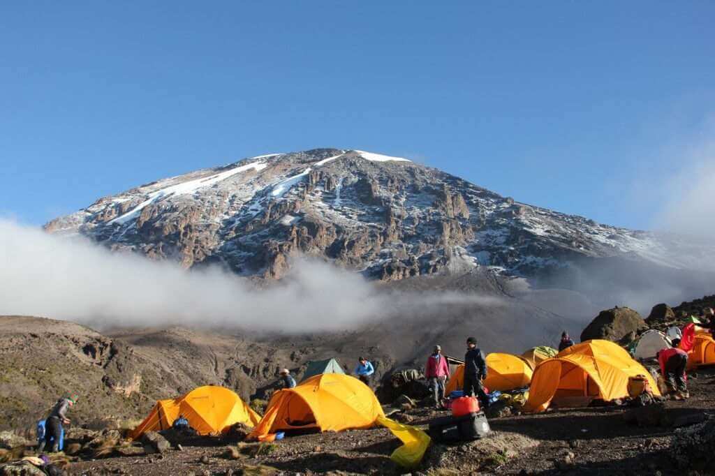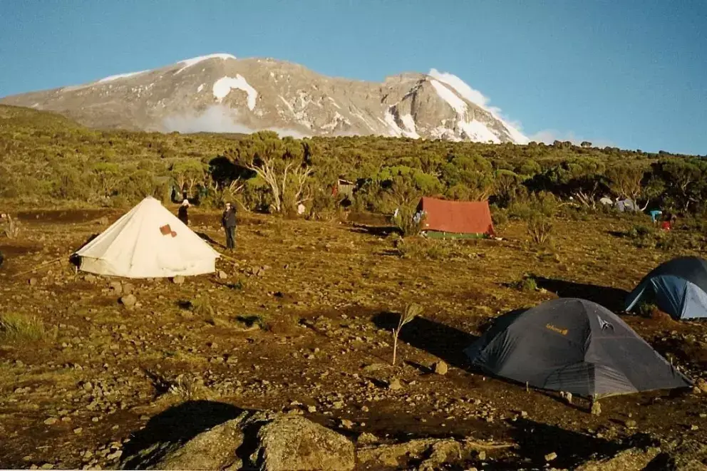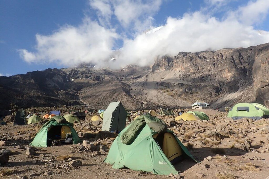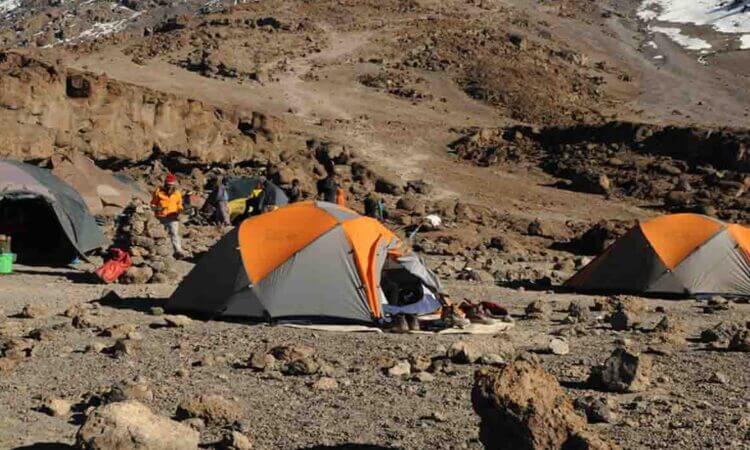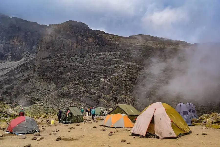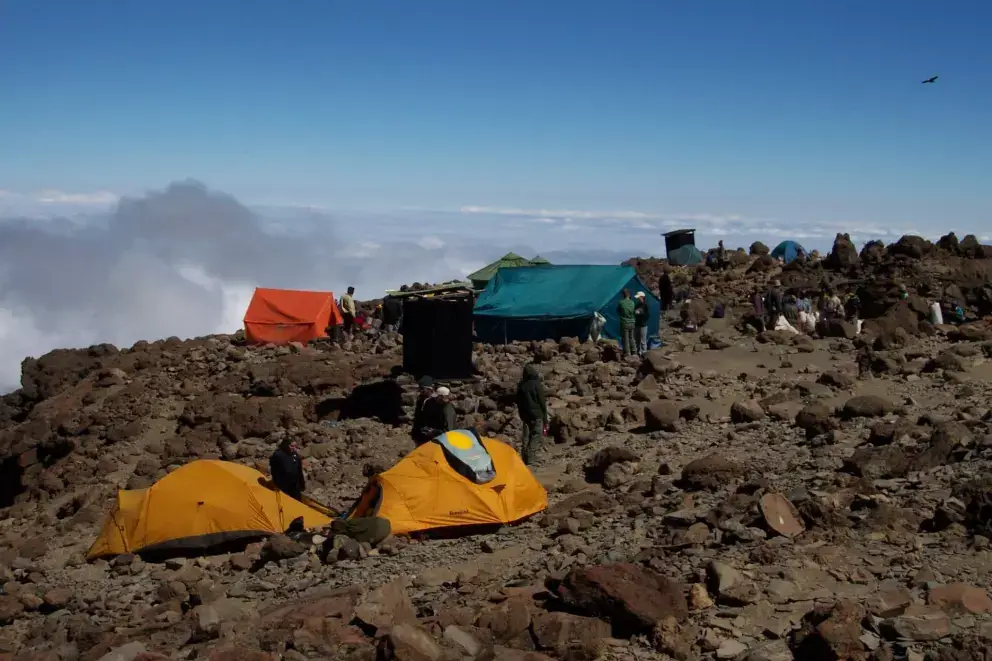 The terrain is rocky, and you may spot small groups of wildlife such as mountain antelopes or birds. After about 4-5 hours, you’ll reach Karanga Camp at 4,040 meters (13,254 ft). The camp sits on a ridge, offering fantastic views of the mountain’s southern slopes and the distant summit. It’s a great place for some rest and acclimatization before heading higher tomorrow.