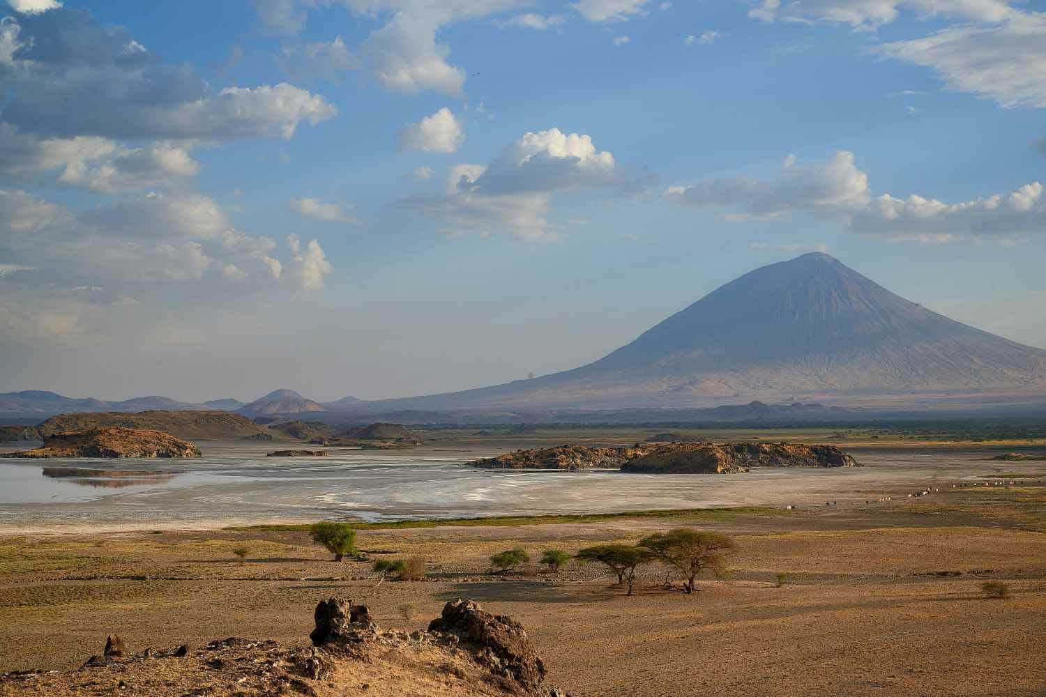Ol Doinyo Lengai, known as the “Mountain of God” in the Maasai language, is an active volcano located in northern Tanzania, near Lake Natron in the Great Rift Valley. Rising to 2,962 meters (9,718 feet), it is the only volcano in the world that erupts natrocarbonatite lava—a unique, low-temperature lava that appears black in daylight and flows like oil.