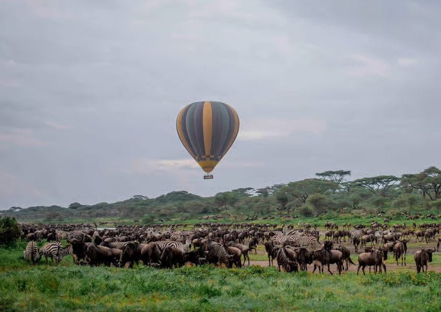 A balloon safari over the Serengeti is one of the most magical ways to experience the vast beauty of Tanzania’s iconic wilderness.