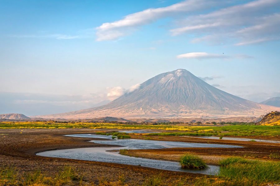 Ol Doinyo Lengai, known as the “Mountain of God” in the Maasai language, is an active volcano located in northern Tanzania, near Lake Natron in the Great Rift Valley. Rising to 2,962 meters (9,718 feet), it is the only volcano in the world that erupts natrocarbonatite lava—a unique, low-temperature lava that appears black in daylight and flows like oil.